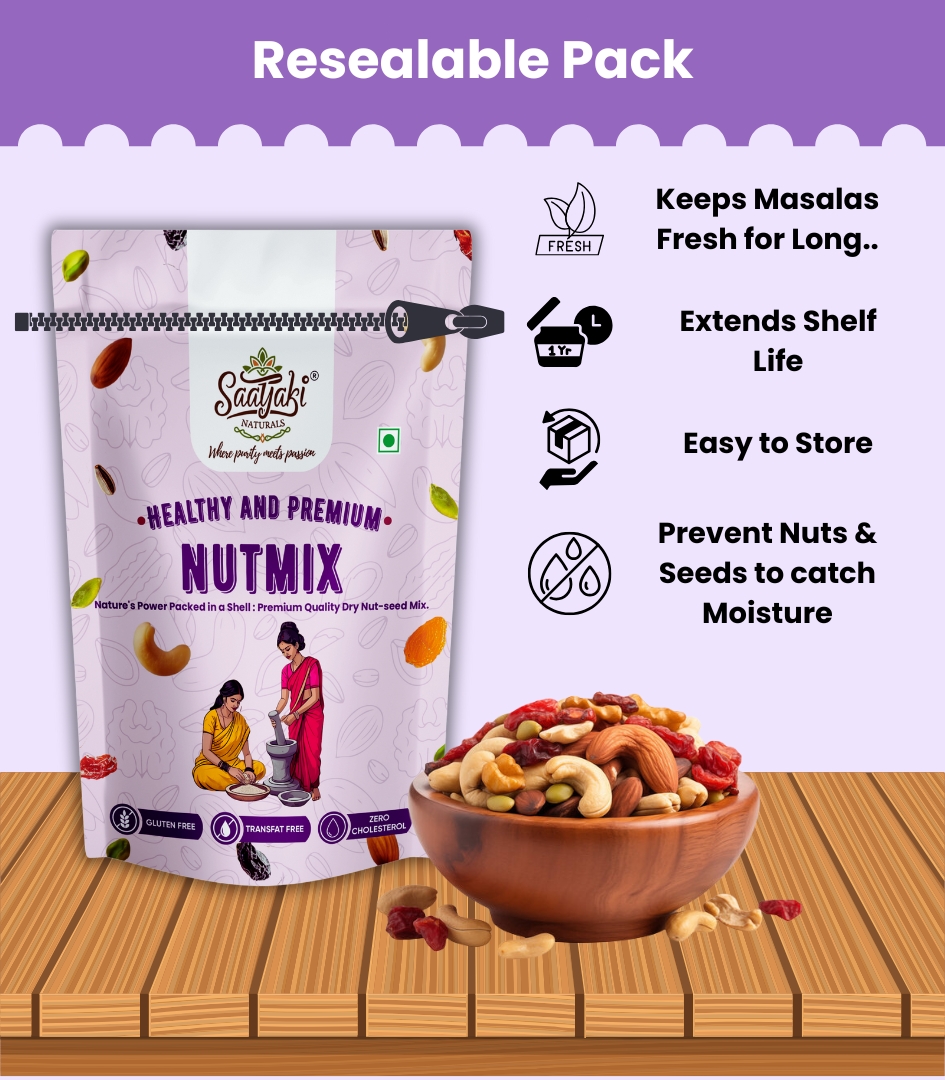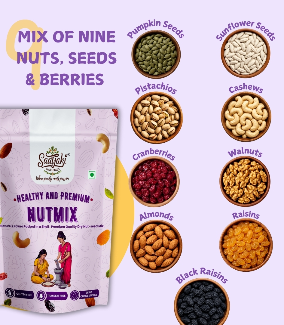 Elevate your daily nutrition with Saatyaki Naturals Premium Nutmix, a thoughtfully crafted mixture of high-quality nuts and seeds. Each ingredient is hand-selected for purity, taste, and nourishment—giving you a wholesome snack that fuels your body naturally. Rich in essential vitamins, minerals, and healthy fats, this premium nut mix delivers long-lasting energy and supports overall wellness.